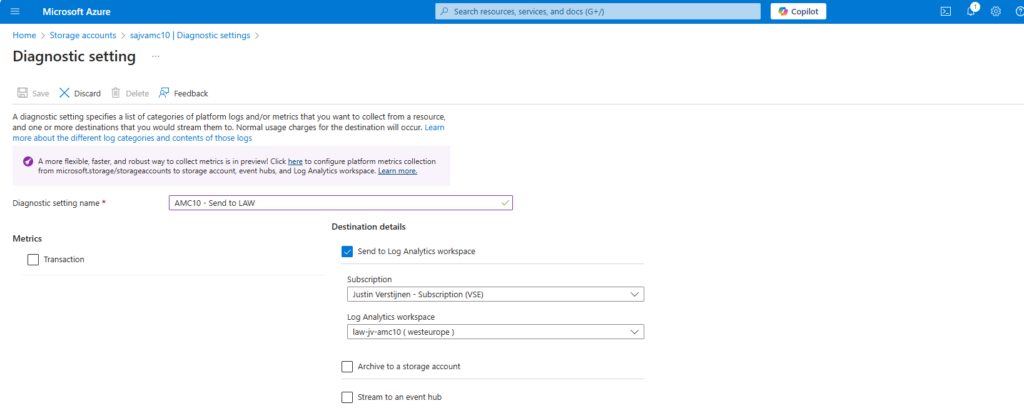 And then “+ Add diagnostic setting”: