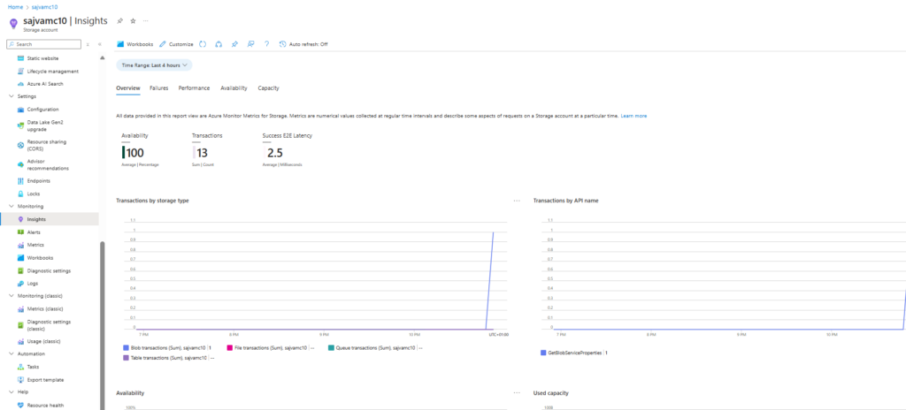 In almost every resource in Azure, you can view resource-specific insights. This is information relevant to the selected resource and can be found under “Monitoring“ and then “Insights”.