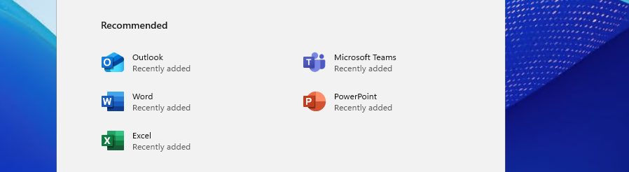 Now the installation of Office is done and I will click through the applications to check the outcome of what we have configured: