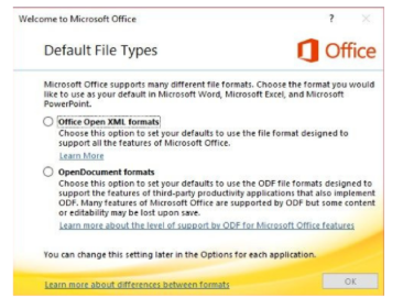 We can set the Office XML or OpenDocument setting in this configuration, as this will be asked for every new user. I am talking about this window: