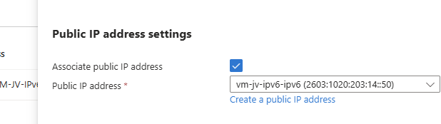 - Create a IPv6 Public IP address