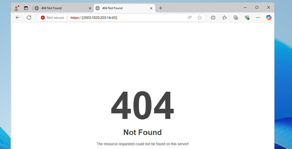 I went to Edge and opened the website by using the IPv6 address: https://[fd02::4]