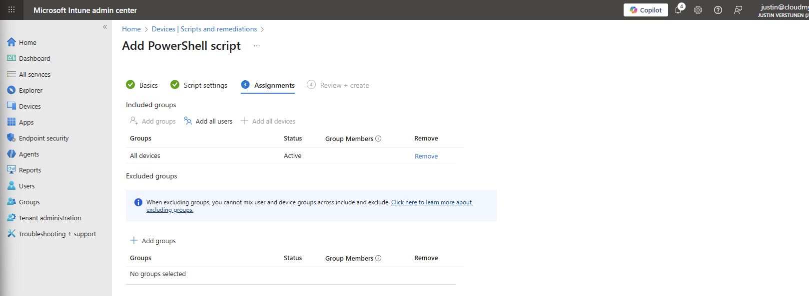 Then click “Next” and assign it to your devices. In my case, I selected “All devices”.