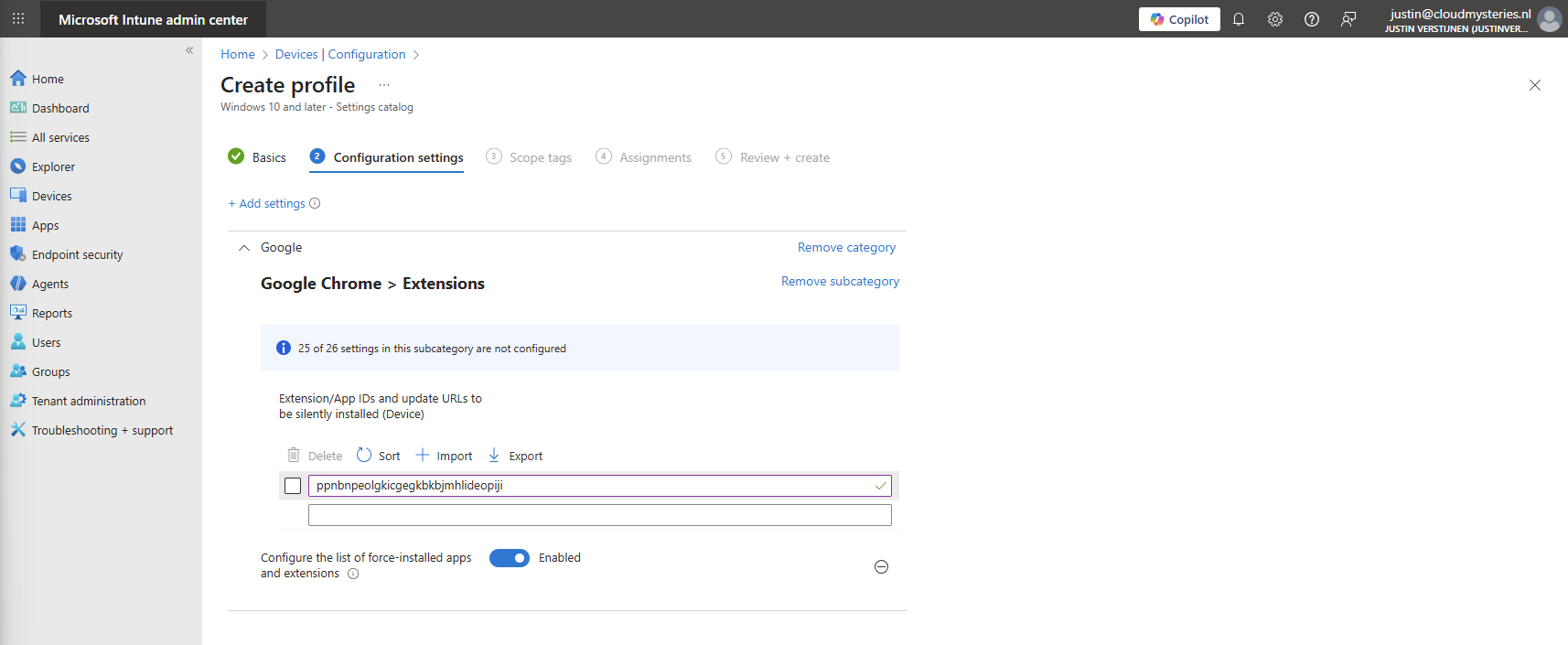 How to deploy the extension with Intune Configuration Policies