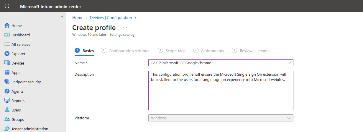 From there, navigate to Devices -> Windows -> Configuration and create a new policy.