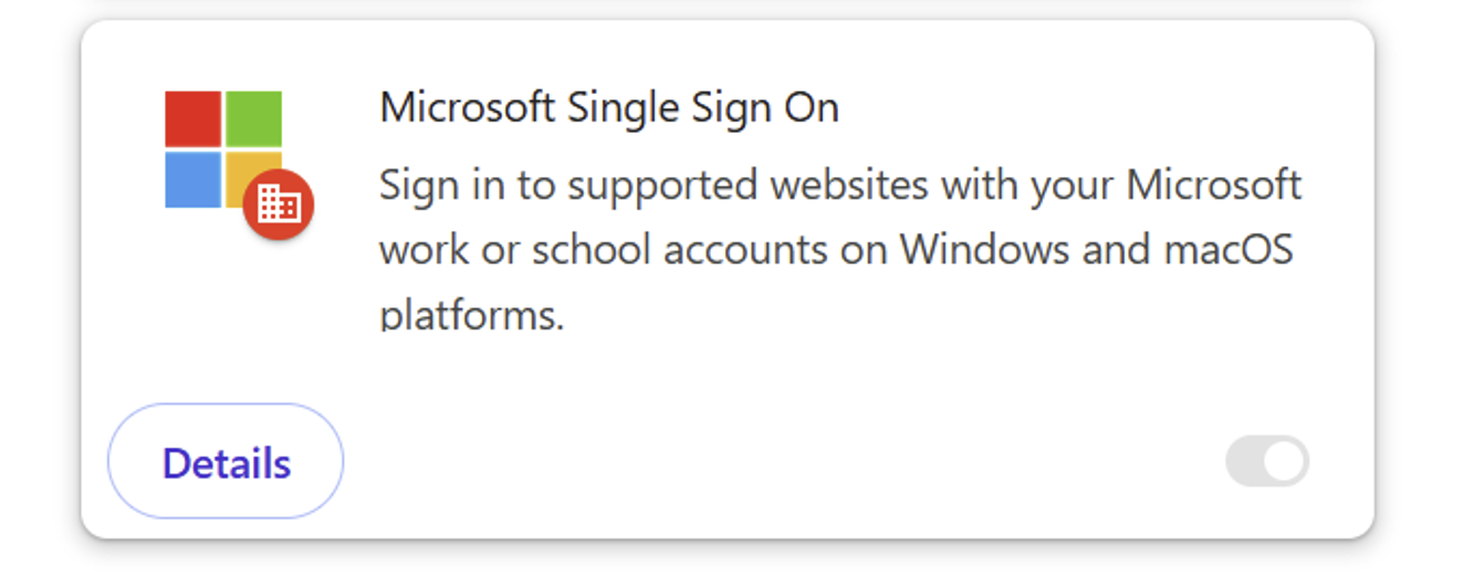 However, there is a Chrome extension published by Microsoft themselves which allows users to also have this Single Sign On experience into Google Chrome.
