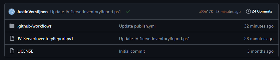 Write-Host "Successfully published $env:DISPLAY_NAME to PowerShell Gallery."Change the information on lines 17, 18 and 19 to your own information and then save the file by clicking “Commit changes” in the top right corner. Make sure the script name and path exactly match your file name on the repository and do not change anything else.