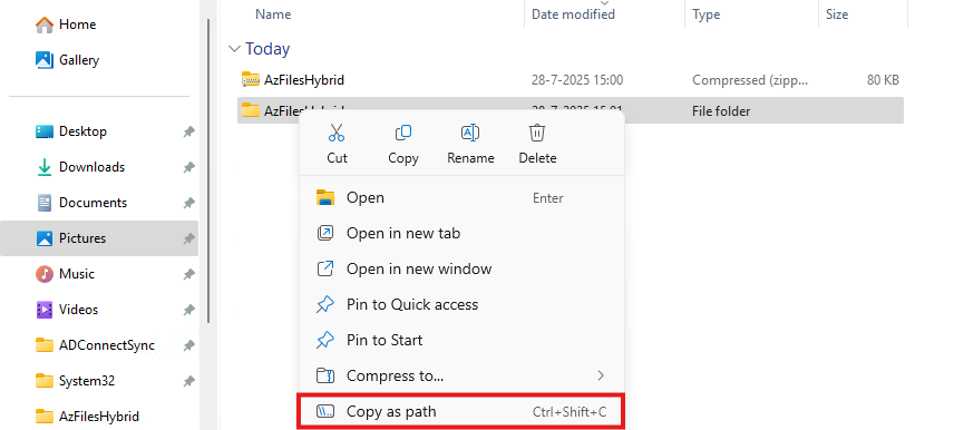 cd "C:\Users\justin-admin\Downloads\AzFilesHybrid"This will directly navigate PowerShell to the module folder itself so we can execute each command.