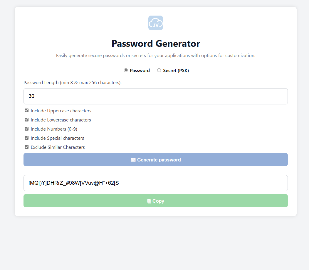 The Password generator is a great and fast tool to easily generate passwords. It also contains some options like the character sets and excluding similar characters.