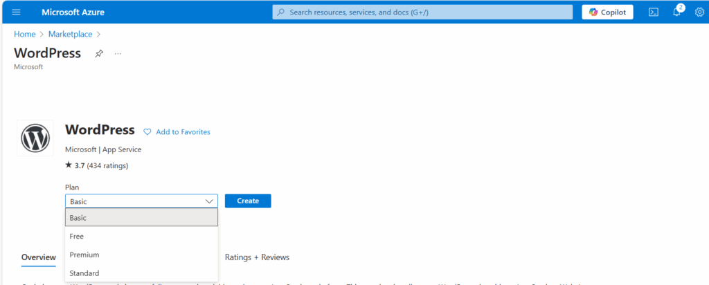 When we look at the Azure Marketplace, we have a lot of different WordPress options available: