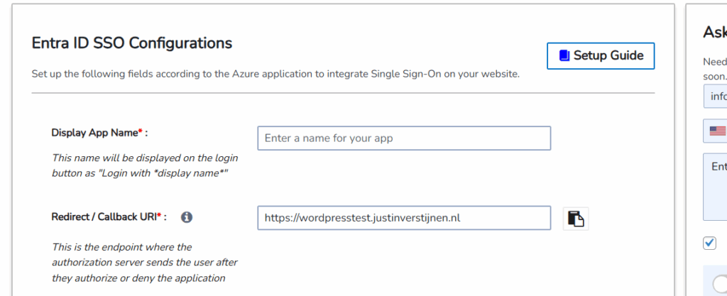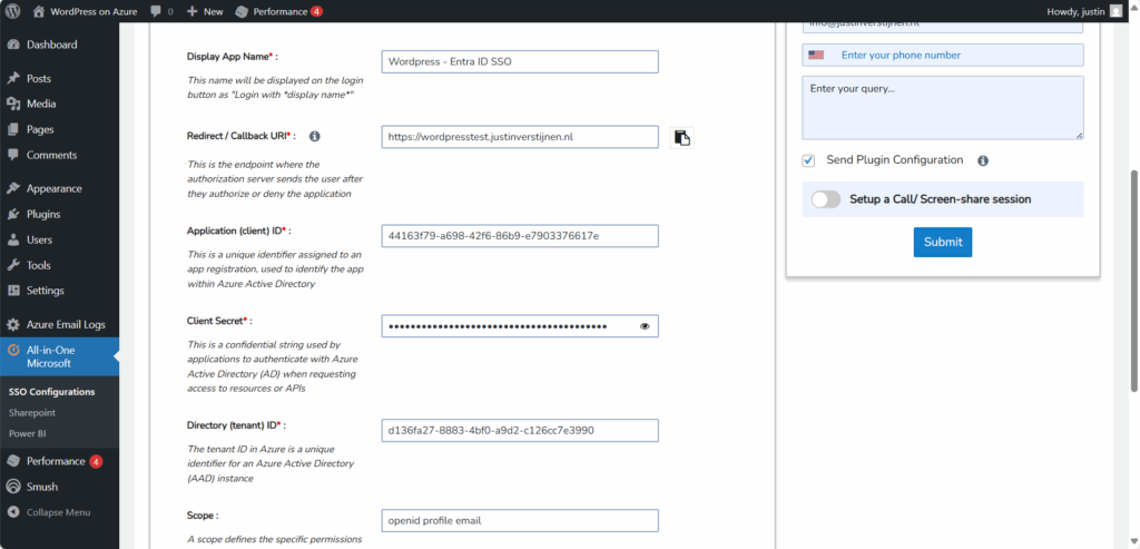 Now head back to WordPress and we have to fill in all of the collected information from Microsoft Entra ID: